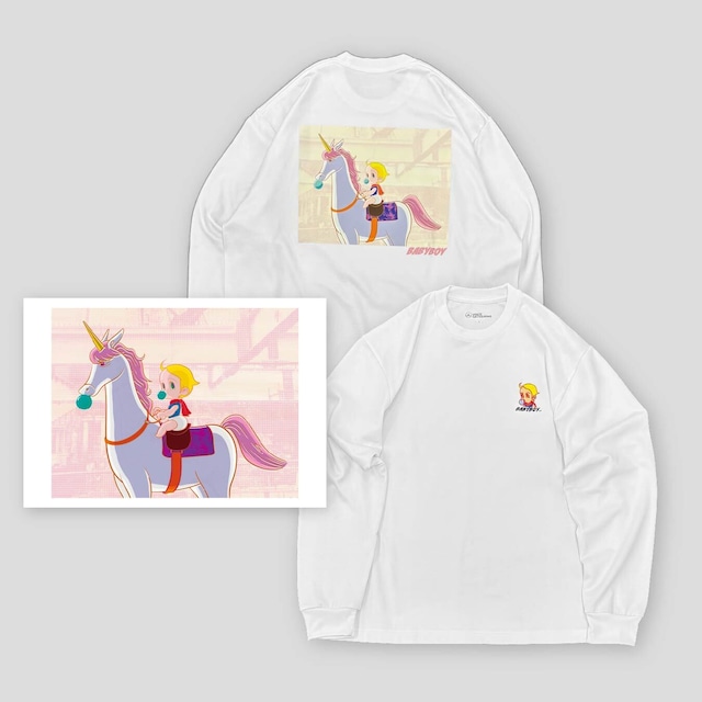 アーティスト名:手島 領 作品名:「NEO(n) YEAR -unicorn-」 ■作品テーマ コロナ禍や戦争といった危機的状況下でも新たに生まれる命があり、その命が危機にさらされる現実に深い憂いを感じています。作品の中心にいる「BABYBOY」は、そんな今という時代に生まれた赤ちゃんのヒーロー。彼は“希望の象徴”であり、次世代の命を守るために立ち上がった“赤ちゃん戦士”という設定。このキャラクターを通じて、たとえ死の隣であっても産まれる命の尊さや未来への願いを描き出しています。 ・前後でプリント位置を選んでいただけます。 ▼サイズ・プリント位置を選択して下さい▼