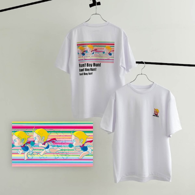 手島 領 「Run! Boy Run!」 ワンポイント刺繍/バックプリント ショートスリーブTシャツ