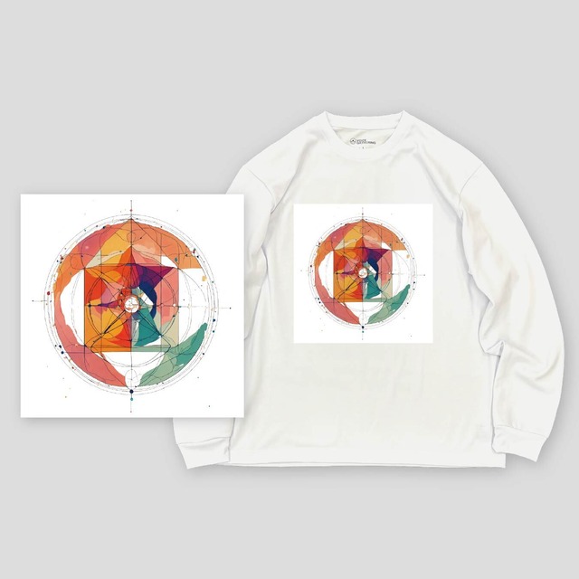 アーティスト名:早坂 彩美 H.Ayami 作品名:「Circle Engine Tokyo」 ■作品テーマ 本作は、実際の都市風景・心象風景をもとに、「万物に宿るエネルギーの放出」というテーマから誕生したドローイング作品です。 カラフルな幾何学模様のモチーフを中心に、チャクラ・宇宙観の概念を織り交ぜながら、生命や都市が放つダイナミックなエネルギーを描きました。 渦を巻くような構成は、東京という都市そのものが1つのエンジンであるかのようにエネルギーを循環させ、個々の存在が重なり合いハーモニーを生み出す様子を表現しています。 ・前後でプリント位置を選んでいただけます。 ▼サイズ・プリント位置を選択して下さい▼