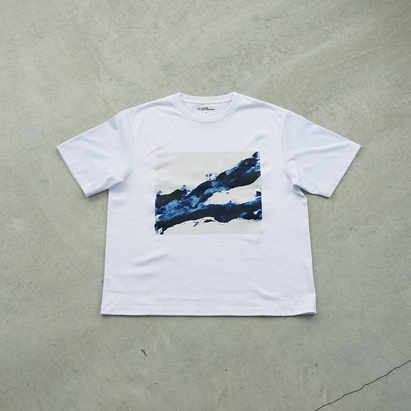 源流に近い川沿いの山道。険しく生い茂る木々の間から時折覗く川の流れ。二つの川が落ち合う地点では、水流が渦巻きながらも、流れのままに突き進んでいく力強さを感じる。つながるこの地点を眺めながら、私たちは「つなぐ」意思を持つこともできることをふと思う。力強さ、木々と川、意思と動き、様々な様子を表現した作品です。