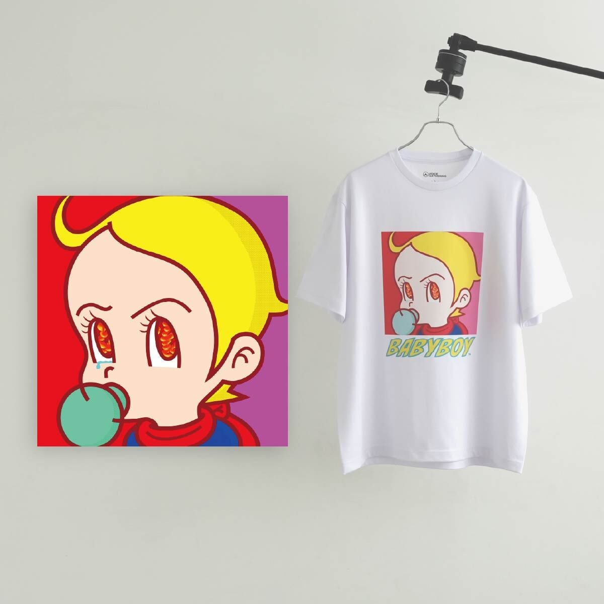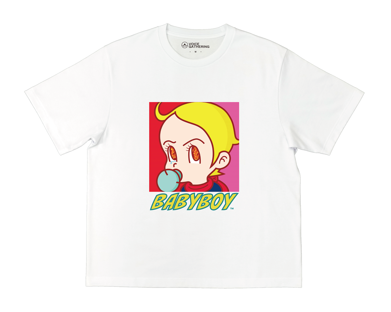 コロナ禍や戦争といった危機的状況下でも新たに生まれる命があり、その命が危機にさらされる現実に深い憂いを感じています。作品の中心にいる「BABYBOY」は、そんな今という時代に生まれた赤ちゃんのヒーロー。彼は“希望の象徴”であり、次世代の命を守るために立ち上がった“赤ちゃん戦士”という設定。このキャラクターを通じて、たとえ死の隣であっても産まれる命の尊さや未来への願いを描き出しています。