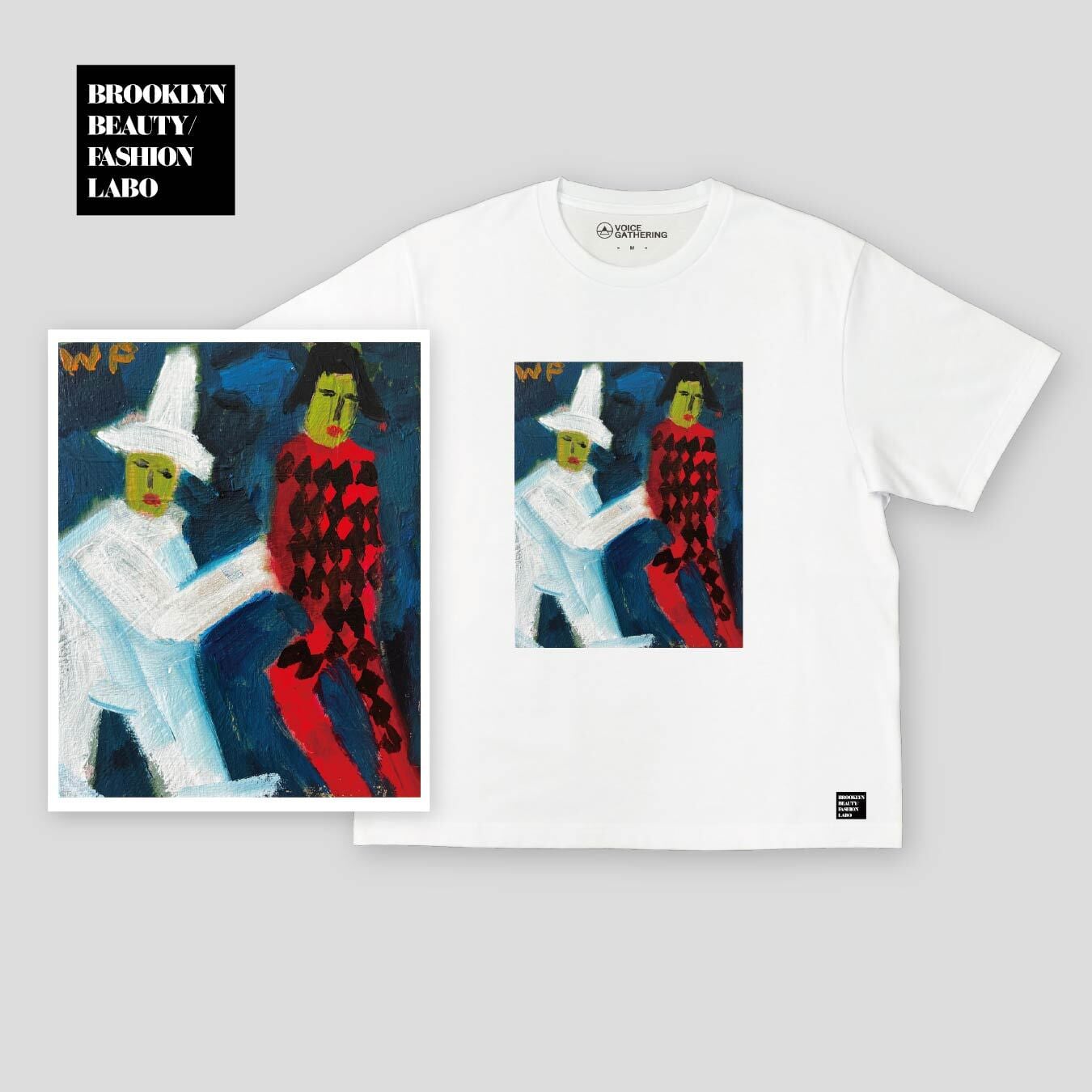 《ピエロとアルルカン(Pierrot and Harlequin)》(2025年)アクリル/キャンバスボード貼り、サイズ:8×10インチ