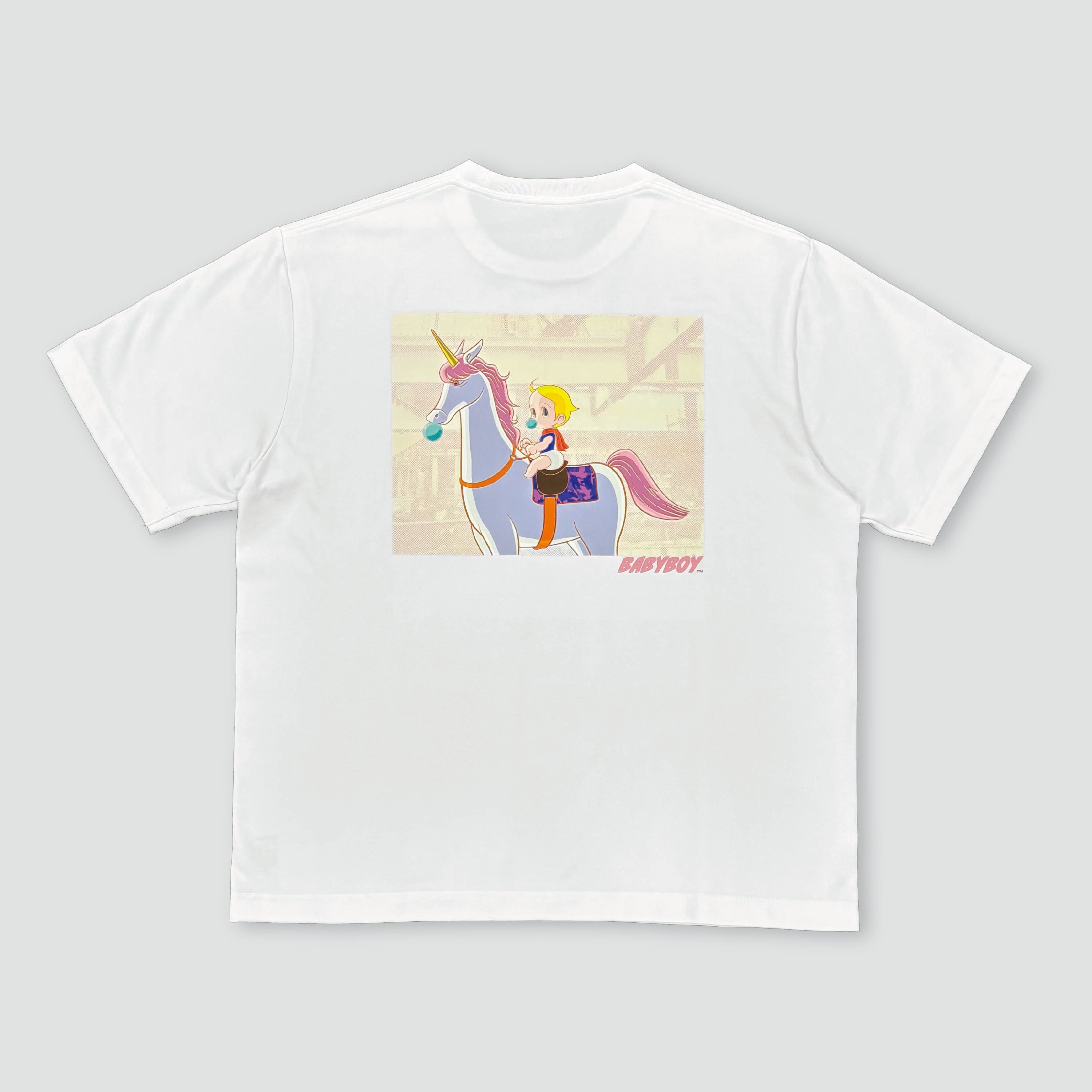 コロナ禍や戦争といった危機的状況下でも新たに生まれる命があり、その命が危機にさらされる現実に深い憂いを感じています。作品の中心にいる「BABYBOY」は、そんな今という時代に生まれた赤ちゃんのヒーロー。彼は“希望の象徴”であり、次世代の命を守るために立ち上がった“赤ちゃん戦士”という設定。このキャラクターを通じて、たとえ死の隣であっても産まれる命の尊さや未来への願いを描き出しています。
