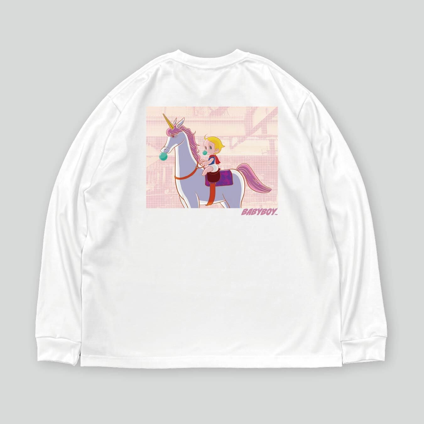 手島 領 「NEO(n) YEAR -unicorn-」 ワンポイント刺繍/バックプリント ロングスリーブシャツ
