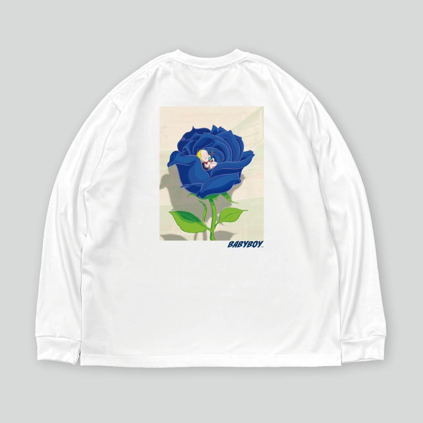 手島 領 「Dream in Rose」 ワンポイント刺繍/バックプリント ロングスリーブシャツ