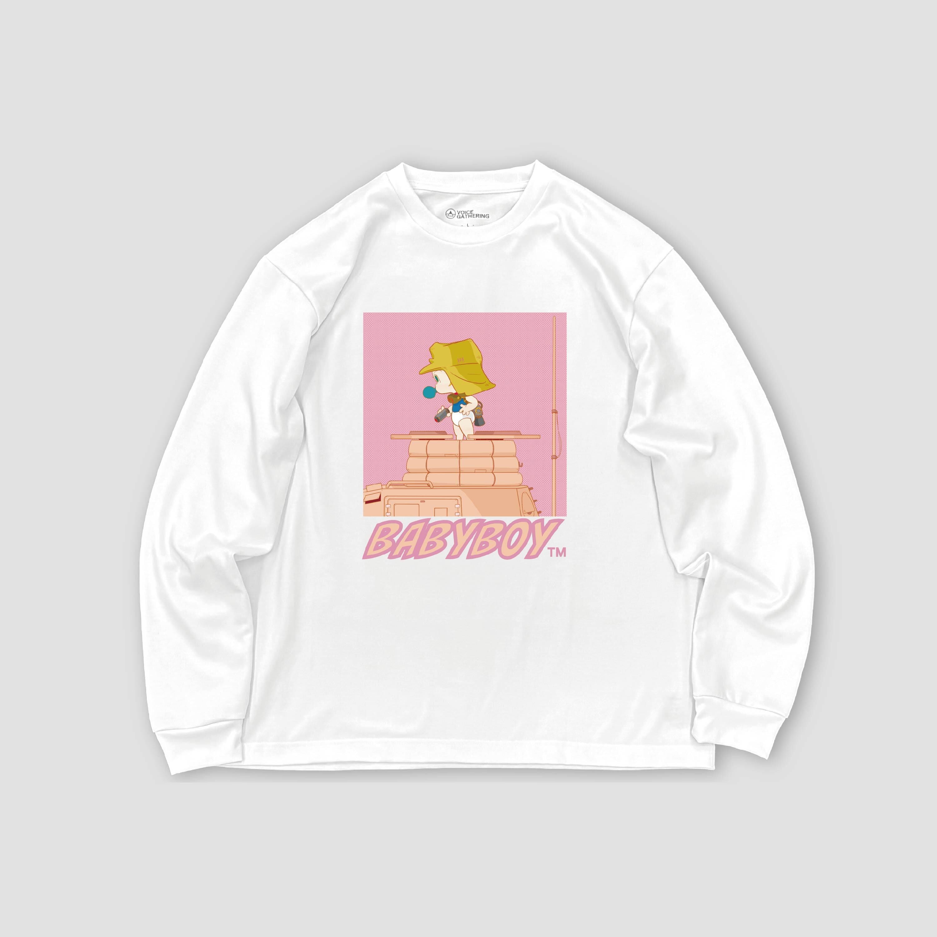 第3弾は可愛らしい「BABYBOY」のワンポイント刺繍+バックプリントのパターンでご用意。バックプリントには「Run! Boy Run!」、「Why Fight?」のアートに加えメッセージプリントを入れたおしゃれなデザインをプラス。