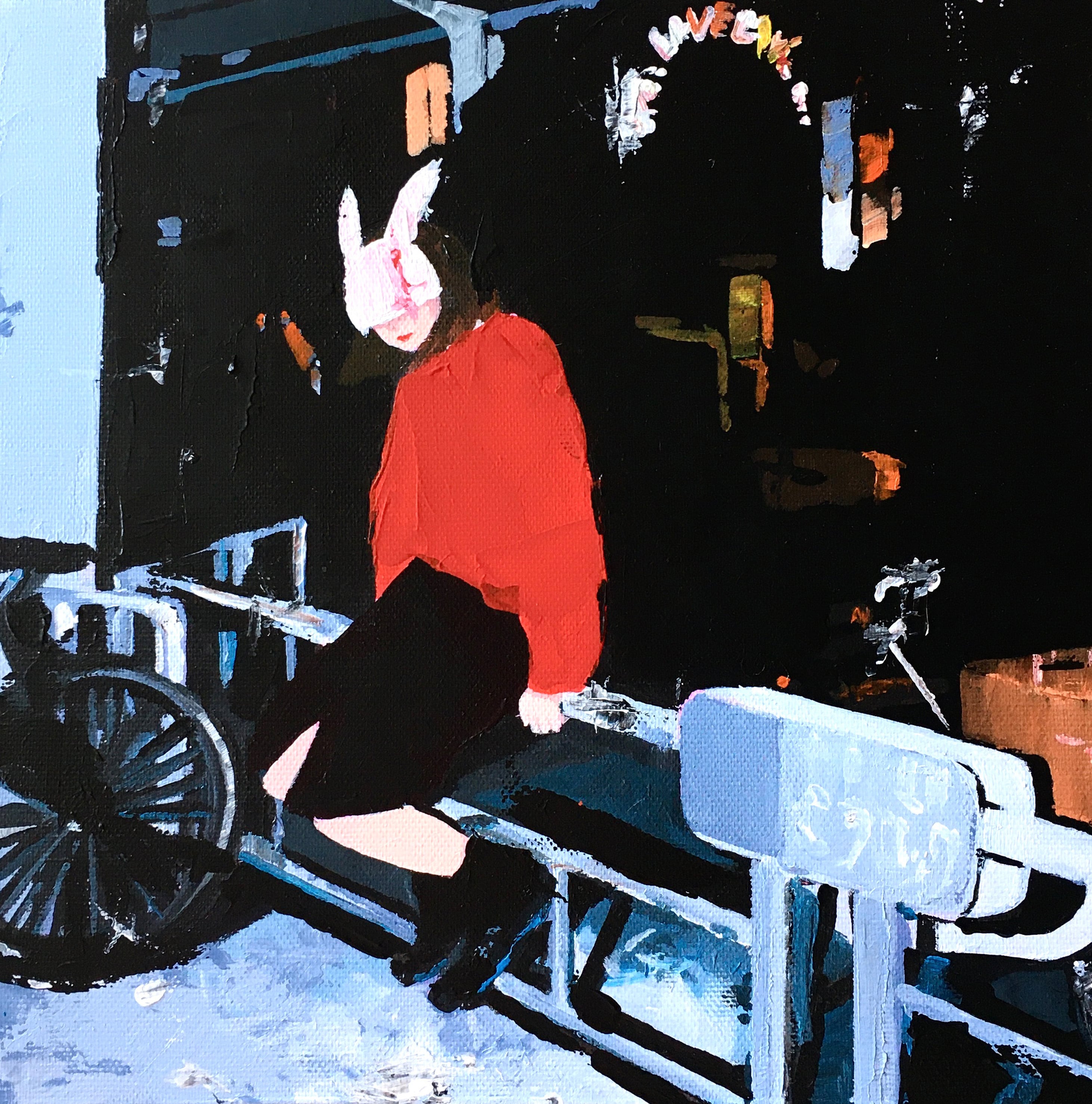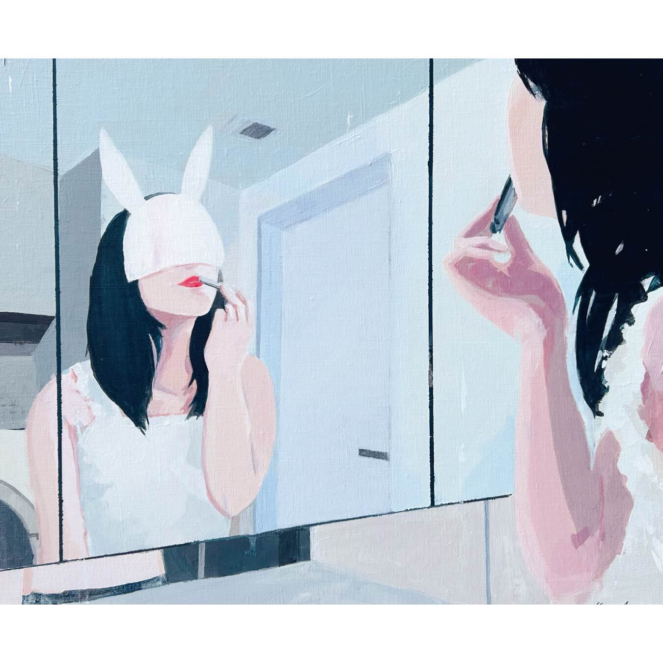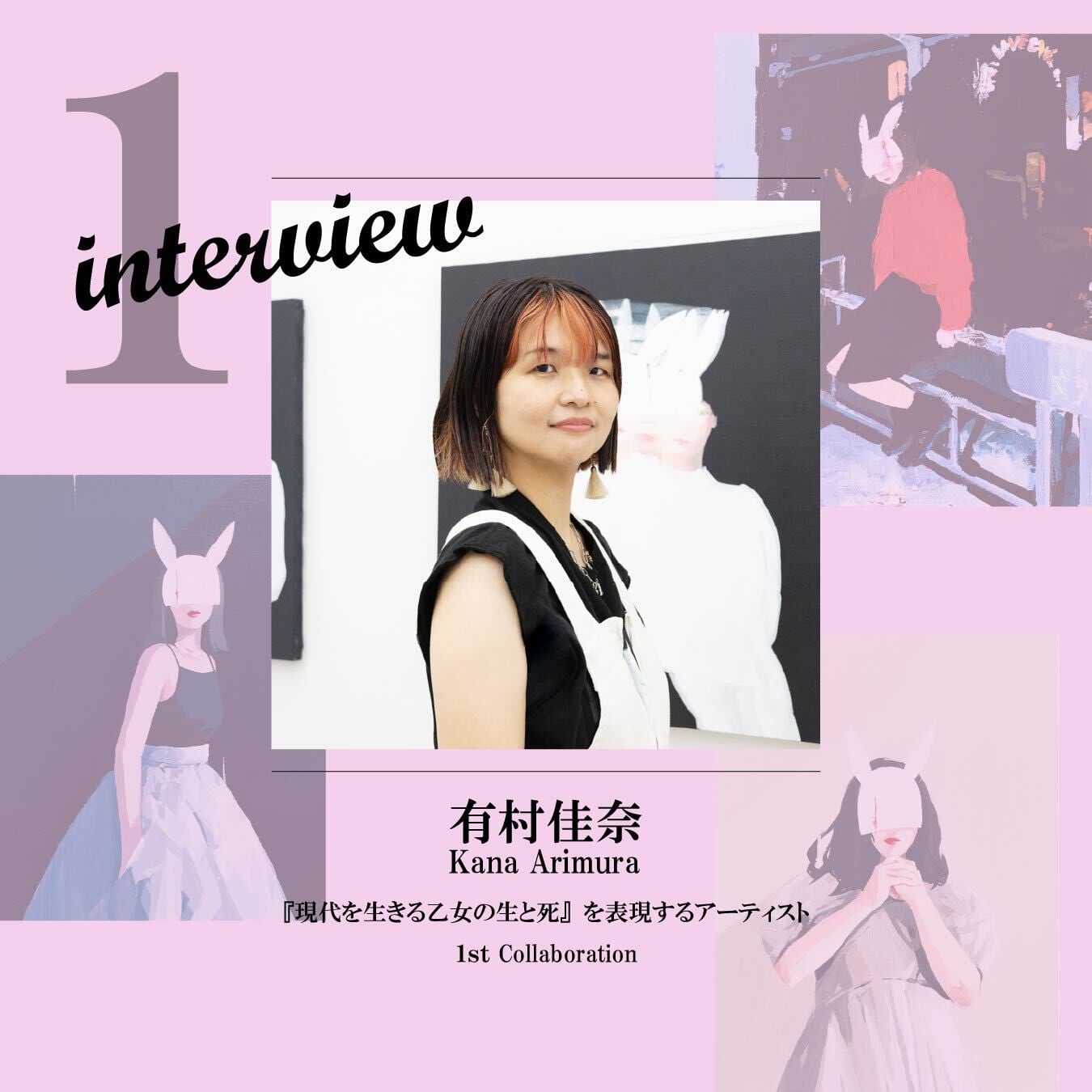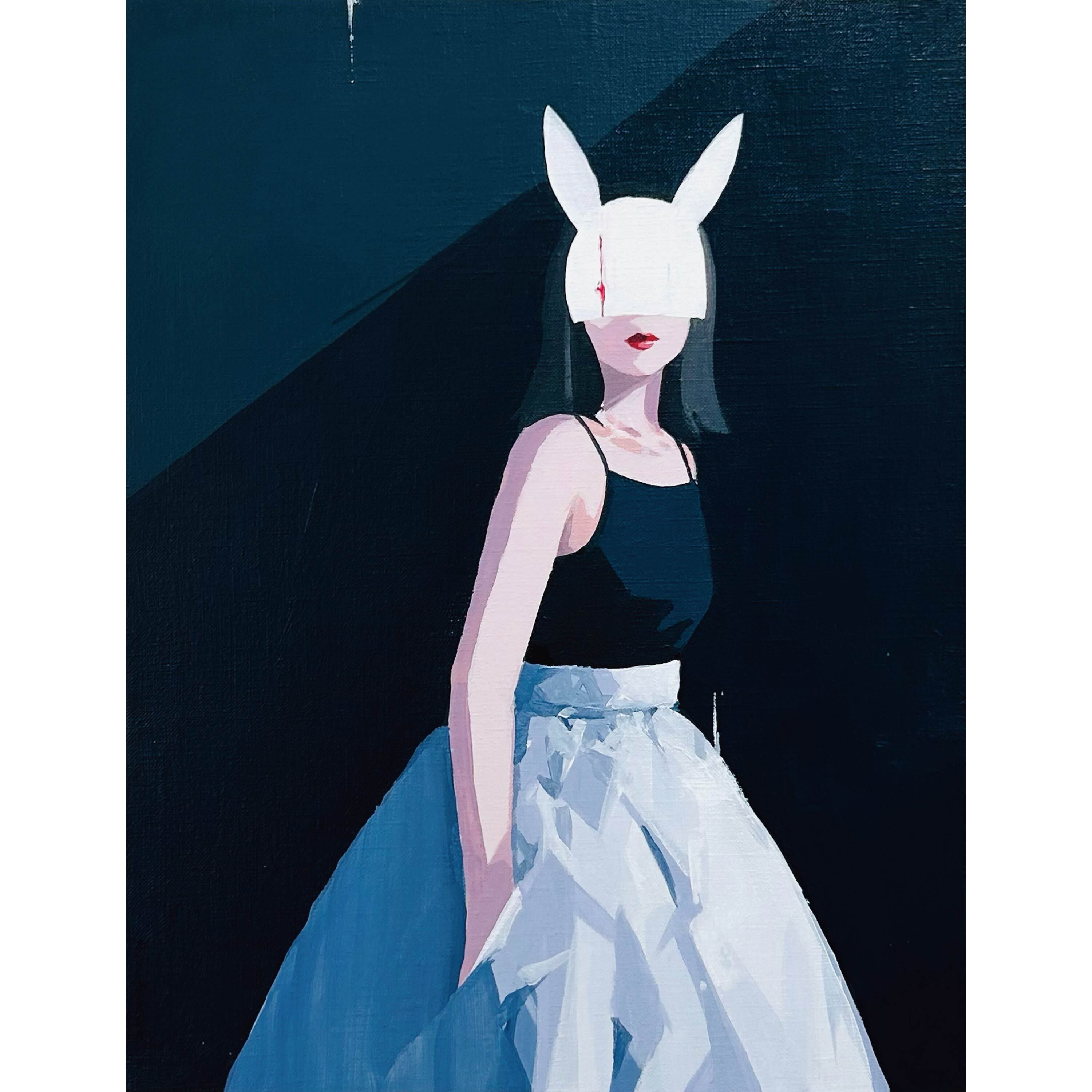 匿名性と自己表現が交錯する現代の姿として、「ウサギの仮面を被った乙女」を主題として描く有村佳奈氏。